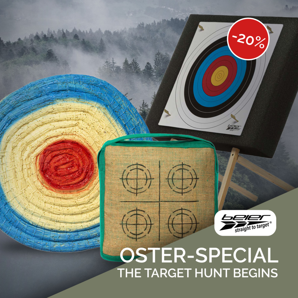We have it all: in our shop, we offer you archery accessories from renowned manufacturers such as GoldTip, Easton, Franzbogen and many more, as well as our BY BEIER GERMANY bow and arrow products we manufacture „made in Germany“ ourselves, or have them produced for us by selected partners. Our bows are handmade; In our bow manufacture we build, in addition to the well-known Strongbows (rattan bows), a wide range of bows: Longbows, Recurvebows, Huntersbows, Horsebows, bows for children, bows for adolescents, Glassfiber bows, LARP-bows, bow sets, design bows and the Robin Hood bows. Our arrow construction creates your arrow according to your individual specifications with the material you desire. A wide range of targets made from Ethafoam, our self-developed arrow net, 3D animals as well as tools and accessories complete our offer. please visit our shop >>>